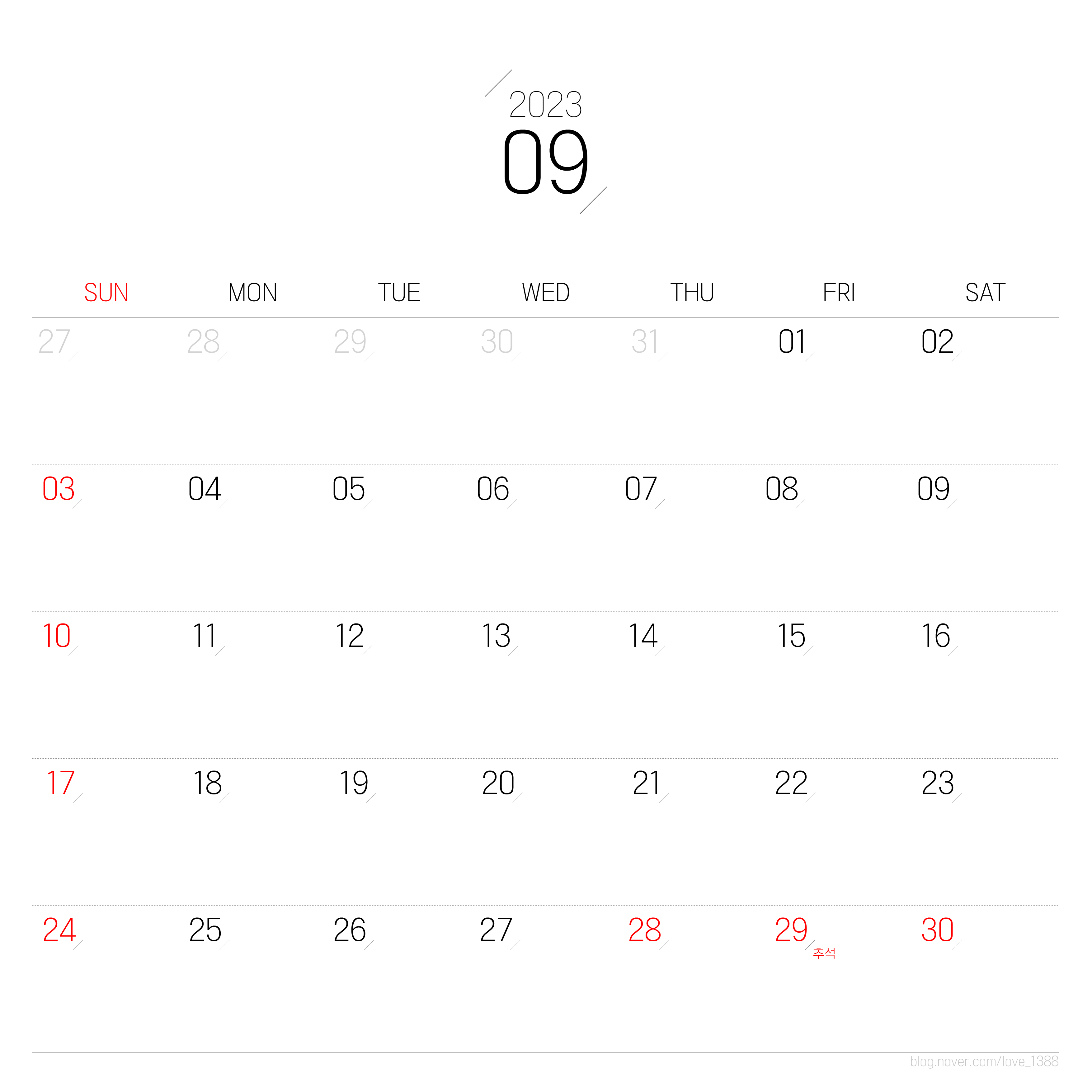 9월에는 28일부터 추석연휴가 시작된다. 휴가를 쓰지 않아도 4일간의 연휴를 즐길 수 있다. 또한 10월 3일 개천절이 예정되어 있어 10월 2일 휴가로 이를 연계한다면 또한 가장 긴 연휴를 보낼 수 있다.