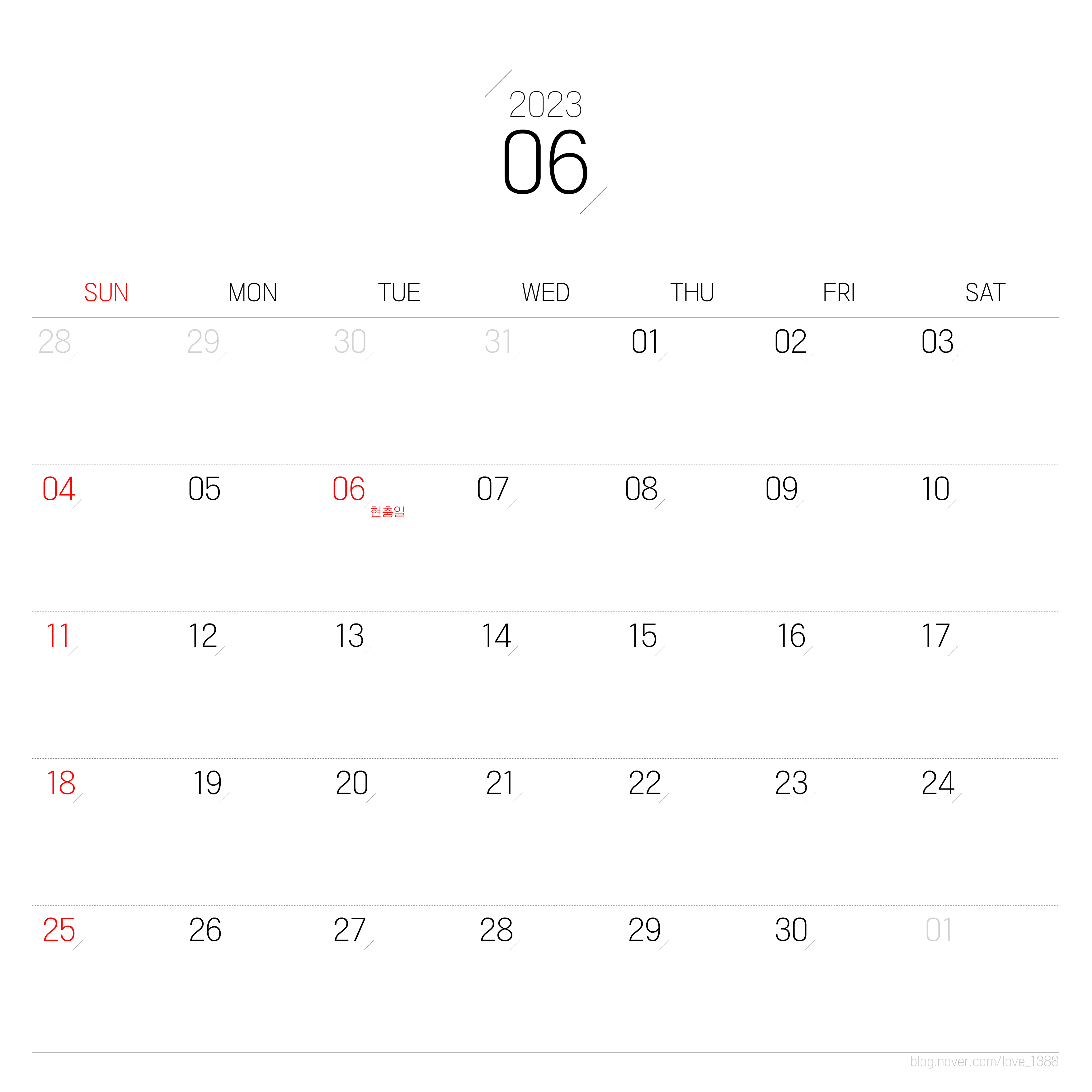 6월은 6일 현충일이 화요일 휴일이다. 5일 휴가가 가능하다면 4일간 연휴가 가능하다.