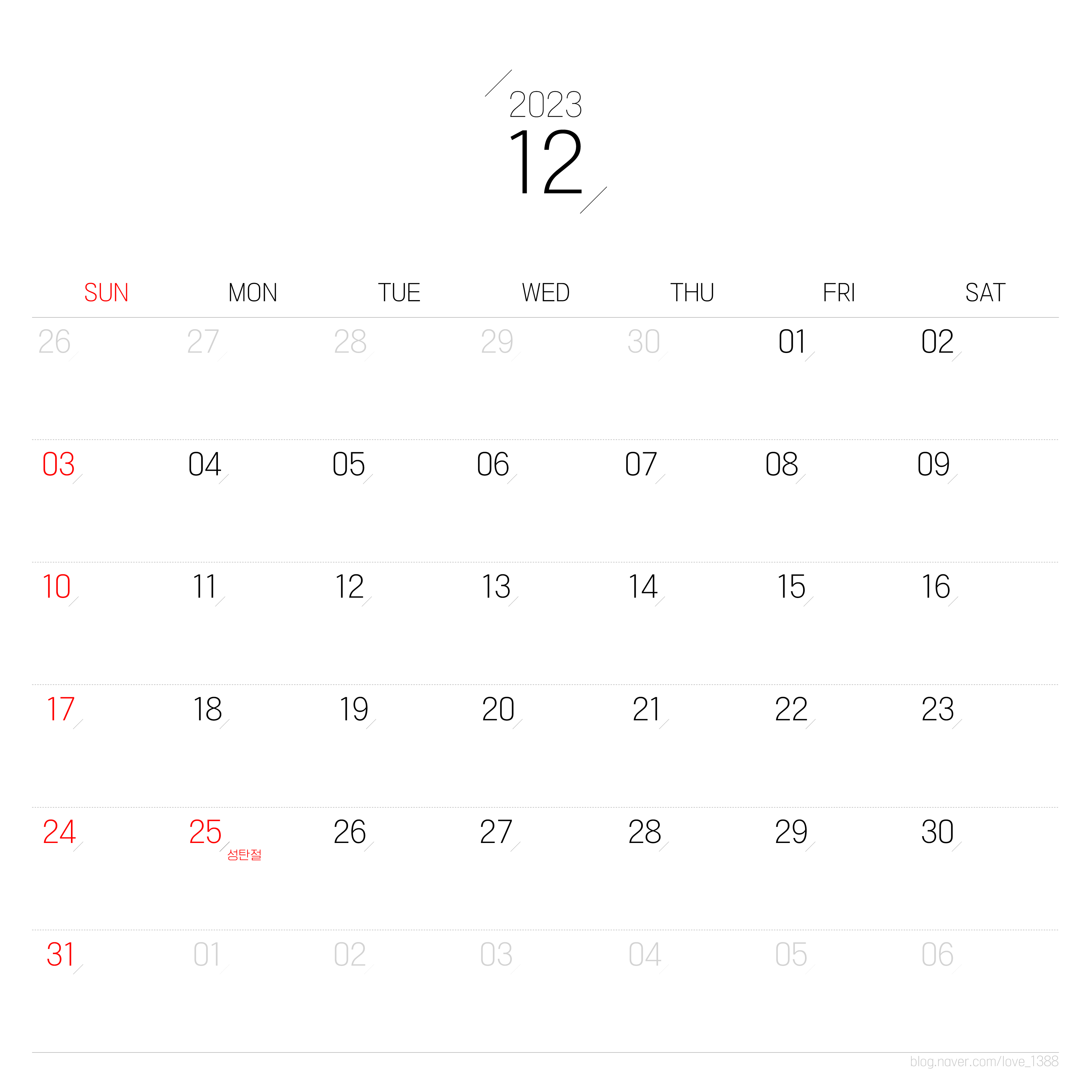 12월은 크리스마스인 25일이 월요일이어서 휴가 없이도 3일의 연휴가 만들어 진다.